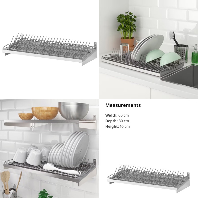 IKEA Kungsfors Bamboo Stainless Steel Metal Shelf Wall Mounted Dish